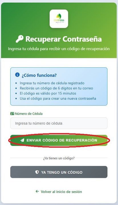 Haz Clic en “Enviar código de recuperación”.